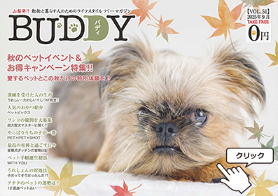| 2025年9月16日発行「ペット雑誌BUDDY vol.51」 ※写真をクリックしてご覧ください♪ |